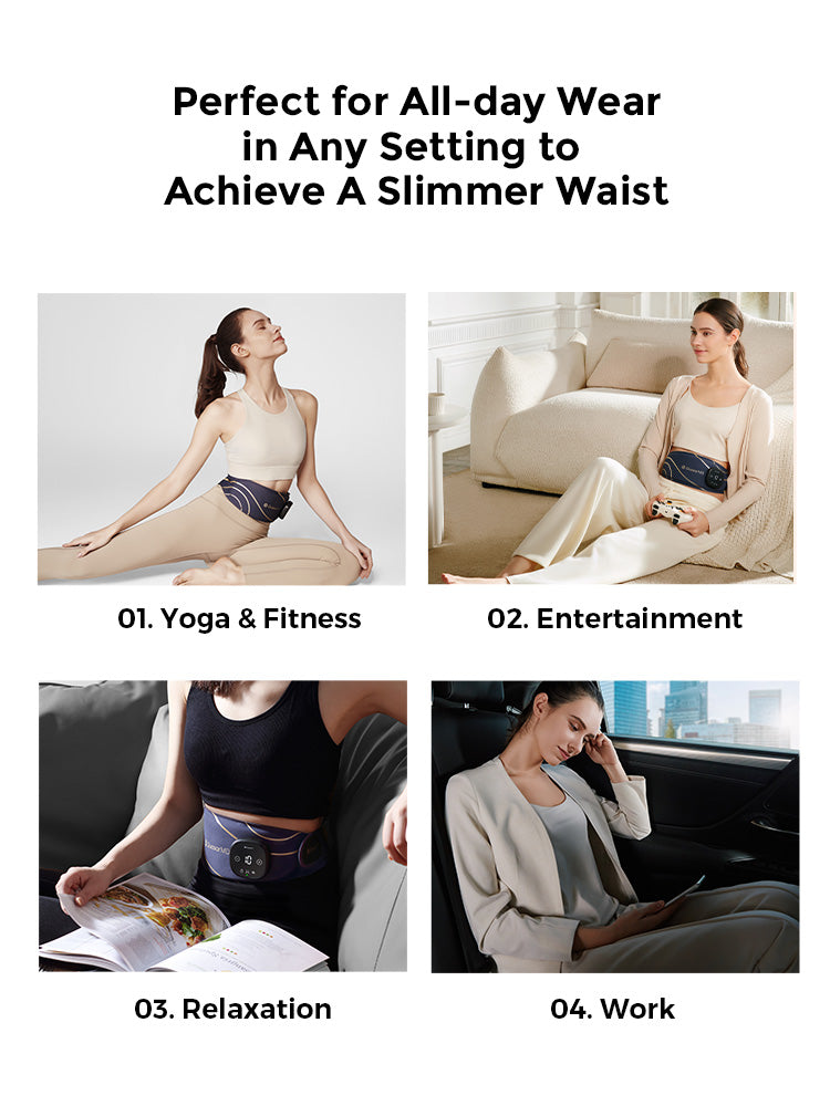• Enhance core muscle strength: Features 4 electrodepads for full coverage,6 massage modes, and smartthermal control (42°C).